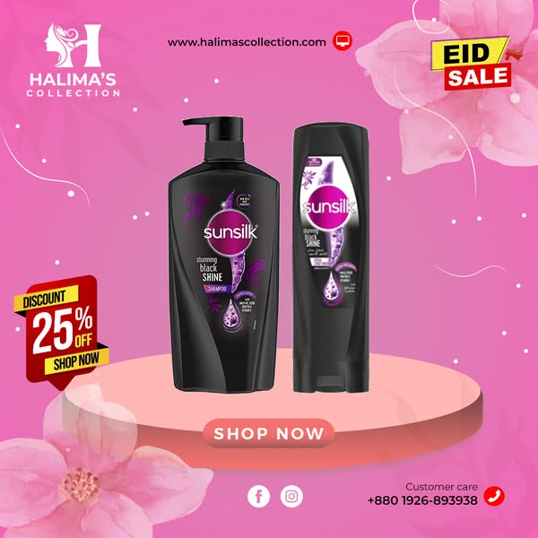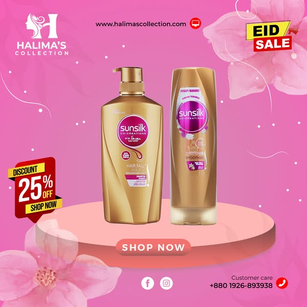 Description : Sunsilk offers affordable shampoos and conditioners for various hair needs like softness, shine, hair fall, and growth. Enriched with natural oils, Sunsilk’s popular lines include Soft & Smooth, Black Shine, and Long & Healthy Growth. PETA-approved and cruelty-free, Sunsilk ensures healthy, nourished hair. Order your favorite Sunsilk products now from Halima’s Collection for soft, shiny, and strong hair!