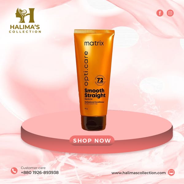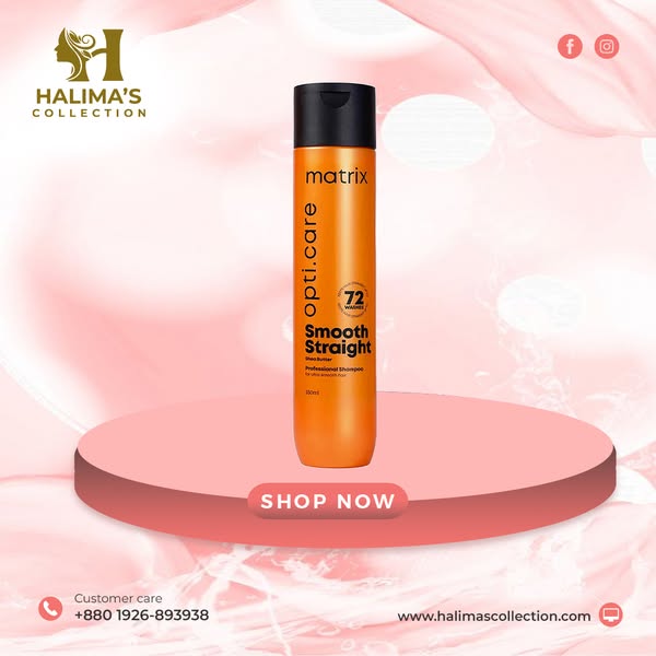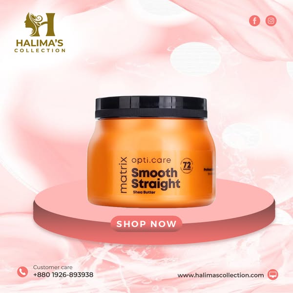 Description : Matrix Opti.Care Smooth is a professional haircare range formulated to control frizz, enhance shine, and maintain straightened hair. Enriched with nourishing shea butter, it deeply moisturizes, softens, and tames unruly strands. Ideal for frizzy, curly, or chemically-treated hair, it ensures sleek, smooth, and manageable results—while offering heat protection and long-lasting salon-like smoothness.